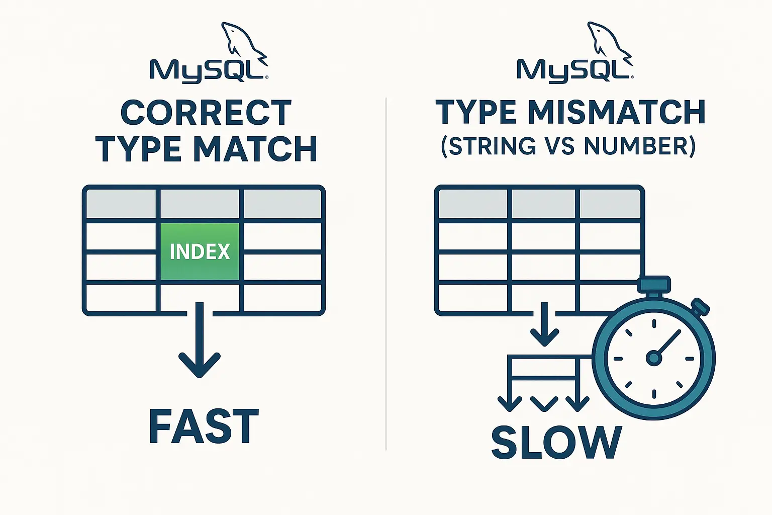 ✅ Always use matching data types in queries.